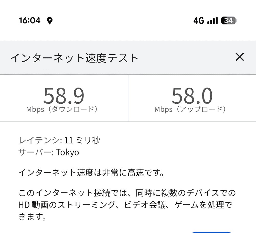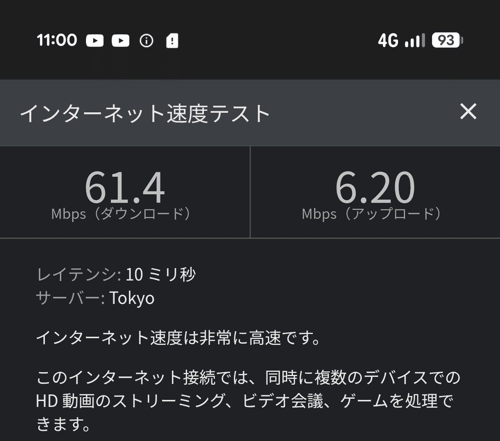 しかし、重要なのは「圏外にはならなかった」という事実です。 8Mbpsあれば、以下のことは問題なくできます。